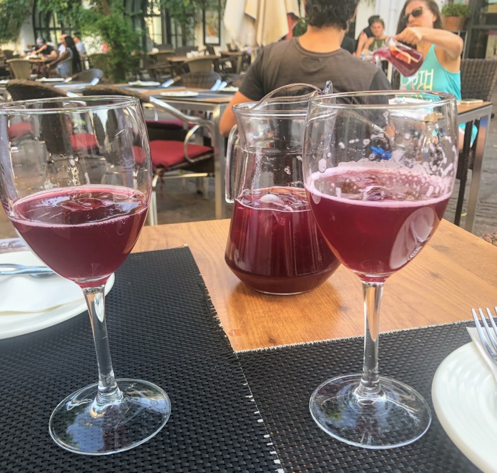We went out for dinner to a restaurant on a beautiful (yet somewhat touristy) street. It was here, after 3 days of confusion, where I finally understood how the seating situation in southern Spain worked. In America, you wait for a host/hostess to seat you. In Southern Spain, it’s a free-for-all. Unless a table says “reserved” on it, you can sit wherever you want. Talia confidently sat at a table on the sidewalk, and a waiter soon came over to take our order.