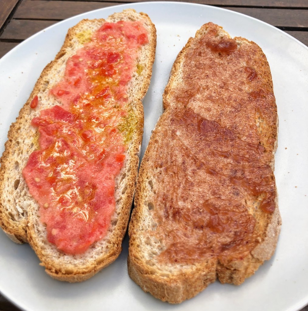 Talia and I got up together and paid 2 euros for the hostel breakfast of pan y tomate (a traditional Spanish breakfast) and coffee.