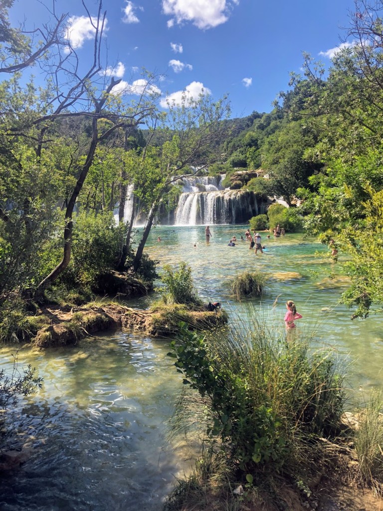 The shuttle to the park took about two and a half hours. I slept the entire way. The park was equally as beautiful as Krka, but had even more tourists. The first stop was the lake that allowed swimmers. I shed my clothes and climbed down the rocks into the water. They didn’t warn us about how slippery the rocks on the floor of the lake would be. I fell within seconds of being in the water. When the day was over, my legs were covered in bruises.